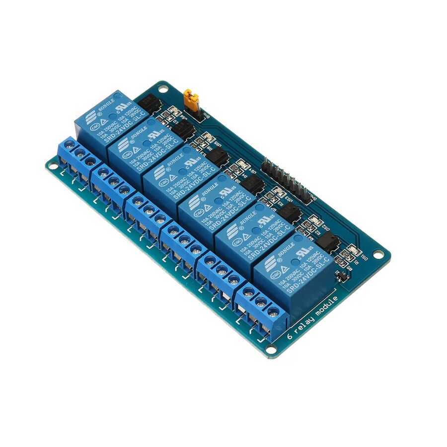 12V tetik gerilimiyle çalışan 6 kanal röle modülüdür. Bu röle modülü yardımıyla AC gerilimleri rahatlıkla anahtarlayabilirsiniz. Röle mekanik yapıda olduğundan kontrol birimine zarar verme ihtimali çok düşüktür. Lamba, fan, priz, televizyon, bilgisayar vb. birçok cihazı bu röle yardımıyla kontrol edebilirsiniz.