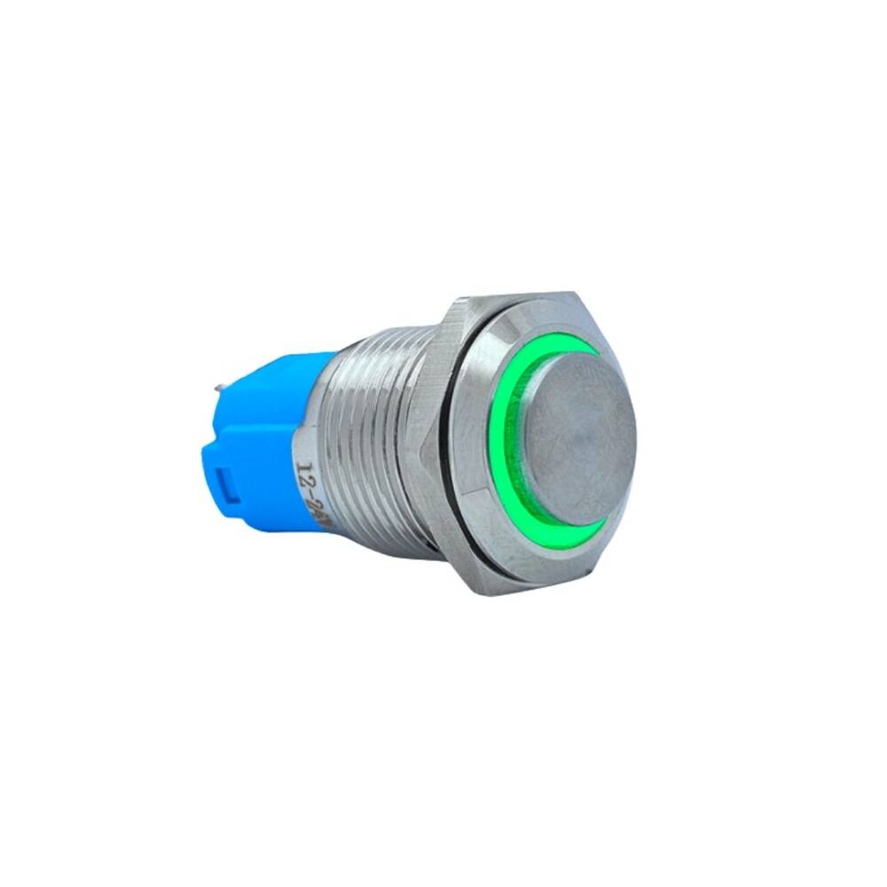 - 1 Adet 16mm Çıkık Yaylı Işıklı Metal Buton - Yeşil
