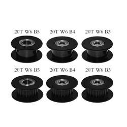 - 1 Adet 20 Dişsiz GT2-6mm Rulmanlı Kasnak - 5mm Şaft Çapı - Siyah
