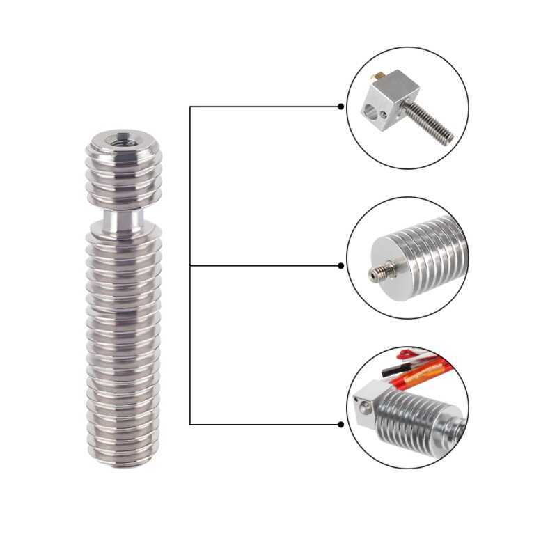 E3D V5 hotendlerle uyumlu M6x26mm boyutlarında bareldir. Soğutucu blok tarafı M6(6mm)'dir. Barelin toplam uzunluğu 26mm'dir.