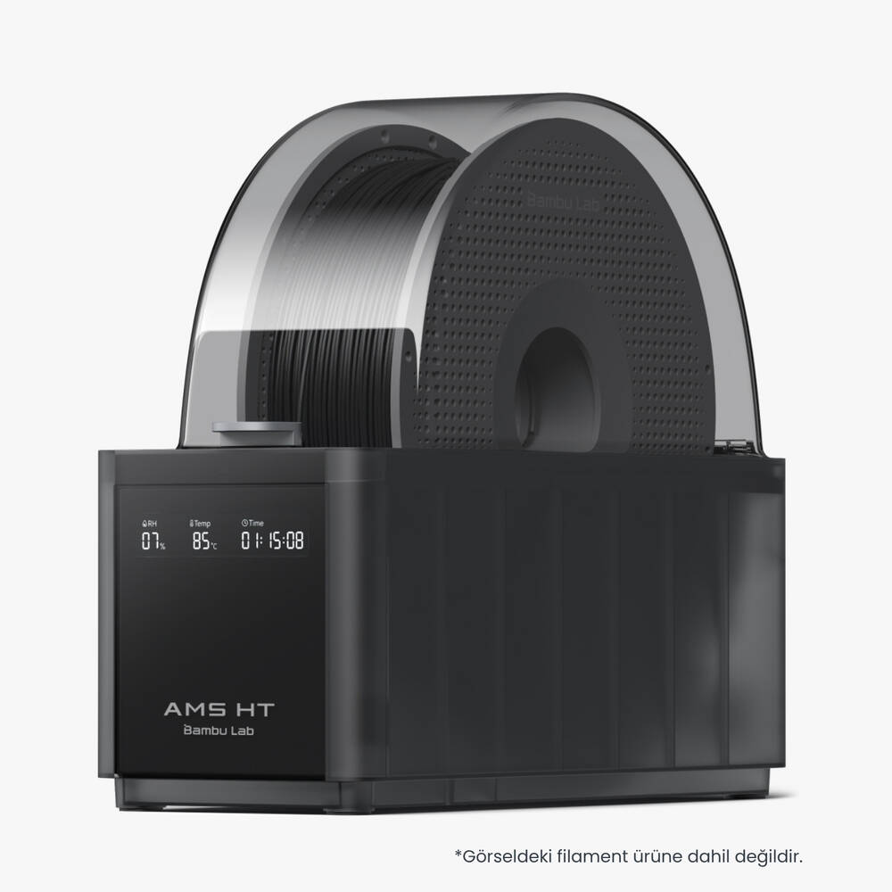Yüksek sıcaklıkta kurutma (maks. 85 °C): AMS HT, naylon, karbon fiber, polikarbonat gibi gelişmiş filamentlerde nem giderme görevini 85 °C’ye kadar ısılarla gerçekleştirir. Bu sayede baskılarda kabarma, ipliklenme ya da delaminasyon(katmanlar arası yapışmama) gibi nem kaynaklı hatalar azaltılır.