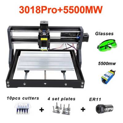 CNC3018 Pro ile birlikte CNC motoru ve 5500mw gücünde Lazerde gelmektedir. Bu sayede hem oyma işlemlerini hemde markalama, yakma işlemelerini tek cihaz ile rahatlıkla yapabilirsiniz.