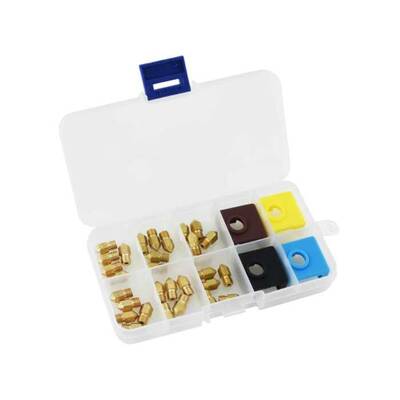 Mk8 Pirinç nozzle Creality Ender 3, Ender 3 Pro, Ender 3 V2, Cr10, Tevo Tarantula, Anet A8 vb 3d yazıcılarla uyumludur. Toplamda 30 Adet MK8 nozzle ve 4 Adet MK8 Silikon Çoraptan oluşmaktadır. 0.2mm, 0.3mm, 0.4mm, 0.5mm, 0.6mm ve 0.8mm filament çıkış çaplarına sahip nozzle ve 4 adet Silikon Kılıf setidir. Vida çapı 6mm(M6) olan mk8 nozzle(nozul) piyasada satılan birçok 3D printer ile uyumludur. 3D yazıcılarda filamentin eritildiği bölüm olan ısıtıcı blokların stabilitesini artırmak için silikon kılıf kullanılmaktadır. Bu ürün MK8 Alüminyum ısıtıcı bloklarda kullanıma uygundur. Piyasada satılan birçok 3d yazıcı modeliyle uyumludur.