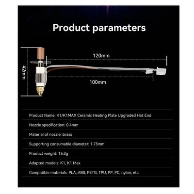 - Model: K1/K1 Max Seramik Isıtıcılı Geliştirilmiş Hotend Seti
