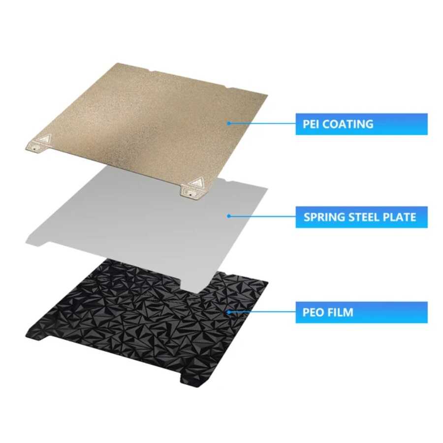 Bir yüzeyi Pei, bir yüzeyi PEO kaplı yay çeliği manyetik tabladır. Baskıların tablaya yapışma kabiliyetini çok büyük oranda arttıracaktır. Creality K1 başta olmak üzere, Cr-10 Se, Ender 3 V3 Se, Ender 3 V3 KE, Ender 3, Ender 3 Pro, Ender 3 V2, Ender 3 S1, Ender 3 S1 Pro vb. boyutlardaki 3d yazıcılarla uyumludur.