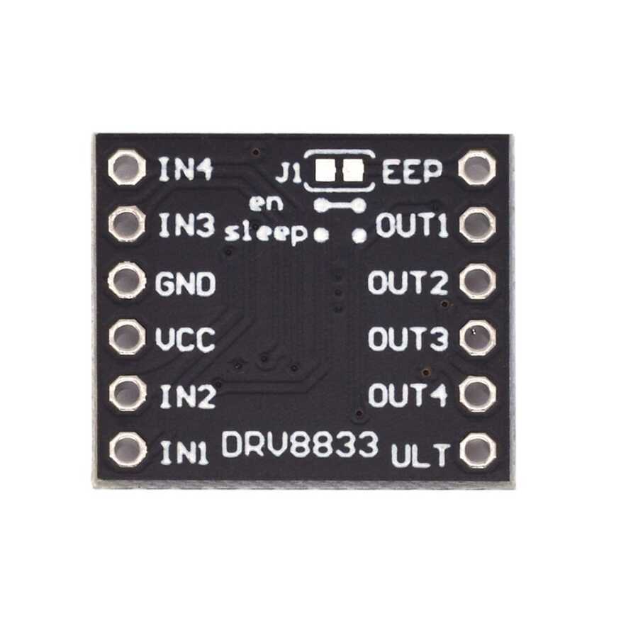 DRV8833 2 kanal dc motor sürücü, 3V ile 10V arasındaki DC motorları sürmek için kullanılmaktadır. Tek modül üzerinden 2 farklı dc motor sürülebilmektedir. L293D vb. motor sürücülerin daha gelişmiş versiyonudur. Standart 250rpm dişli motorları rahatlıkla sürebilirsiniz. Çizgi izleyen robot, engelden kaçan robot, labirent çözen robot vb. robotik projelerde rahatlıkla kullanılabilir. Arduino vb. geliştirme kartlarıyla kullanıma uygundur.