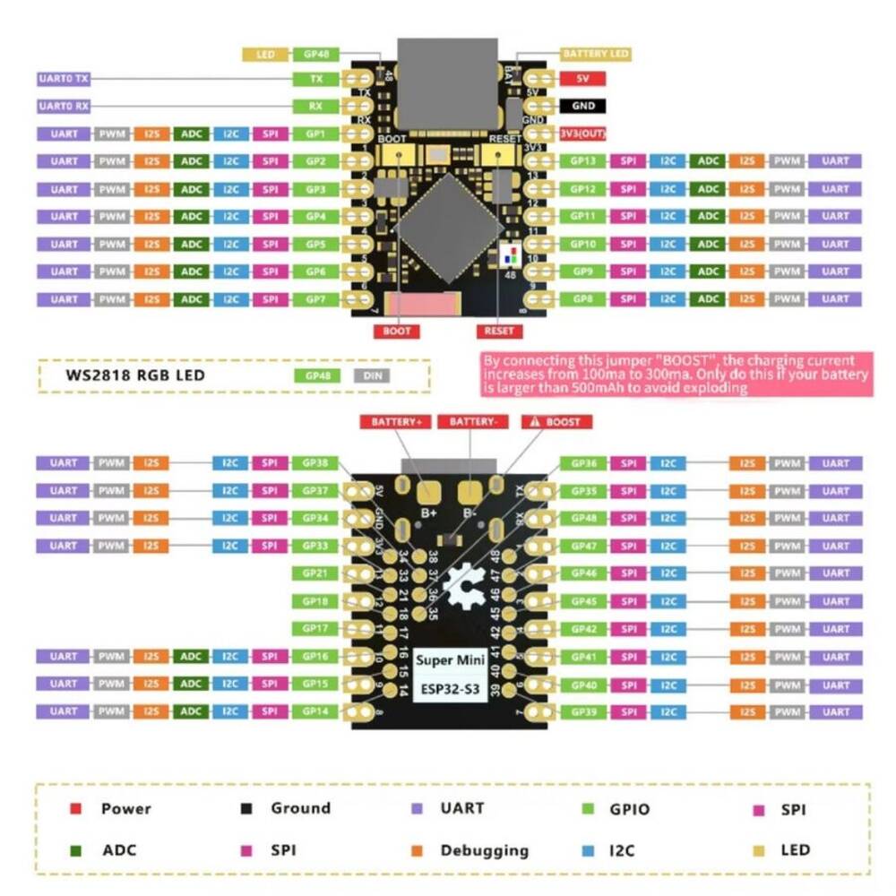 - Dahili LED:RGB, mavi LED (GPIO48 pin üzerinde)