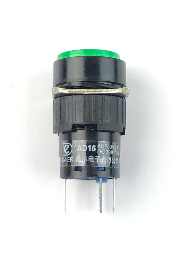 - 1 Adet SY-11 16mm LEDLİ Plastik Yaylı Buton Yuvarlak-Yeşil